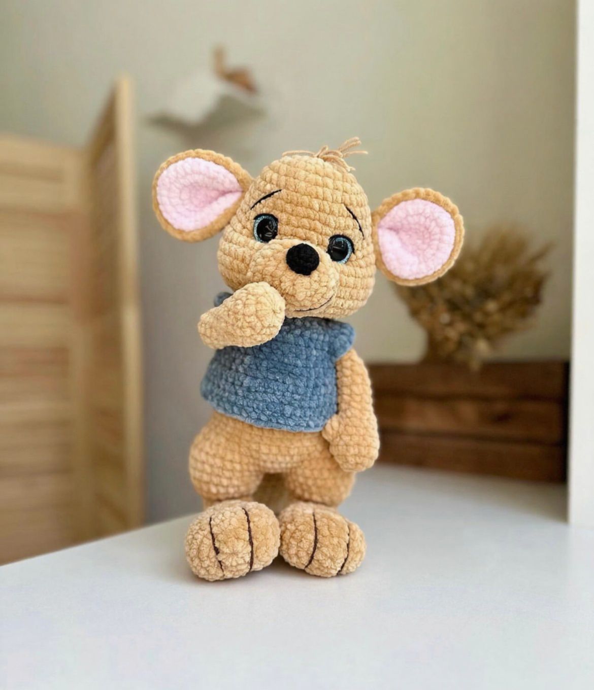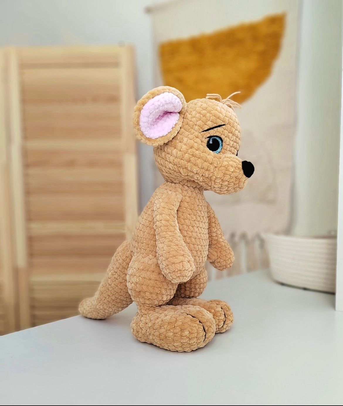 Met dit patroon haak je een kangoeroe van ca. 30 cm groot, met een schattig jasje, contrasterende oren en kleine details die hem tot leven brengen. Perfect als handgemaakt cadeau 🎁 of als bijzondere decoratie.