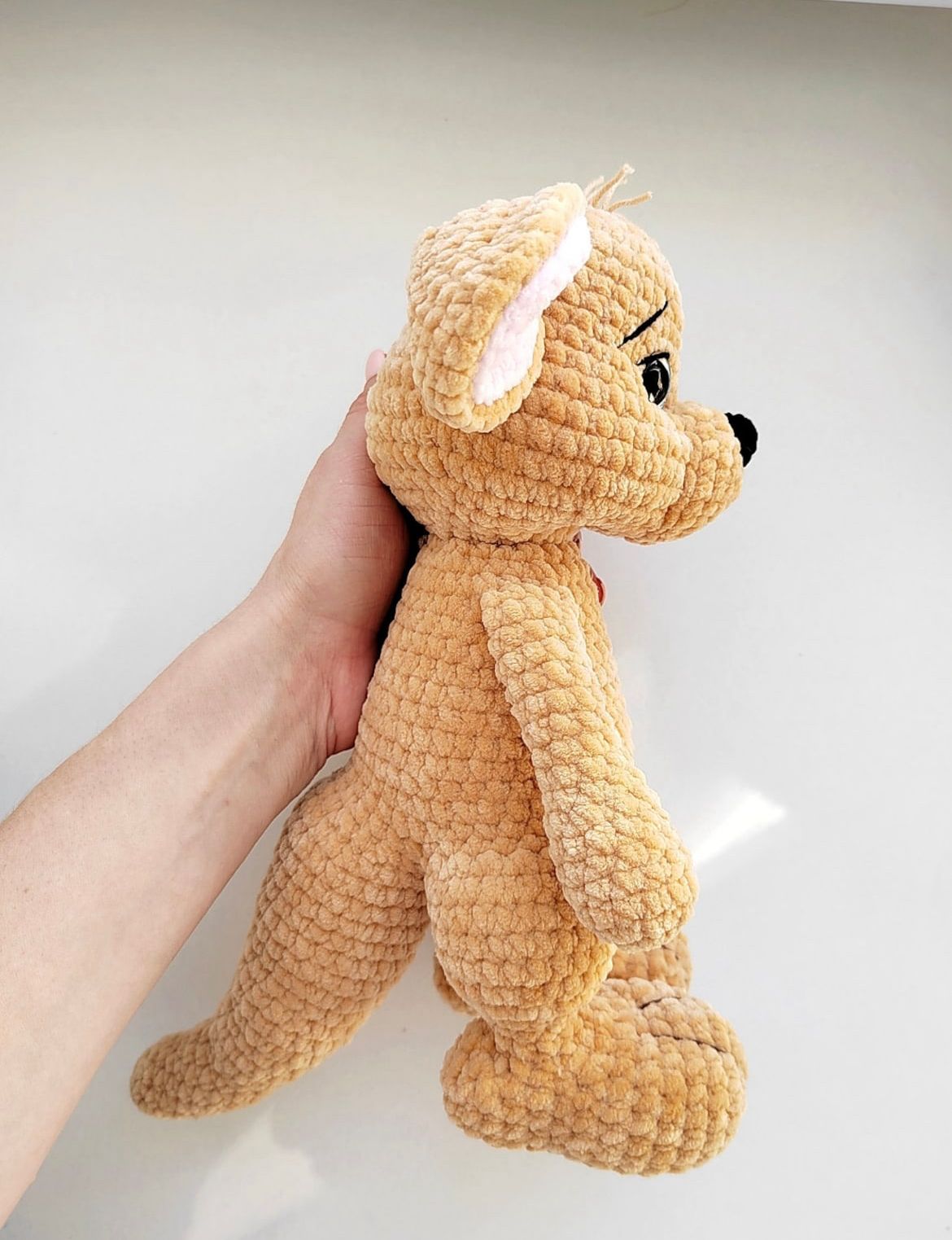 De afgewerkte kangoeroe wordt ongeveer 30 cm groot.