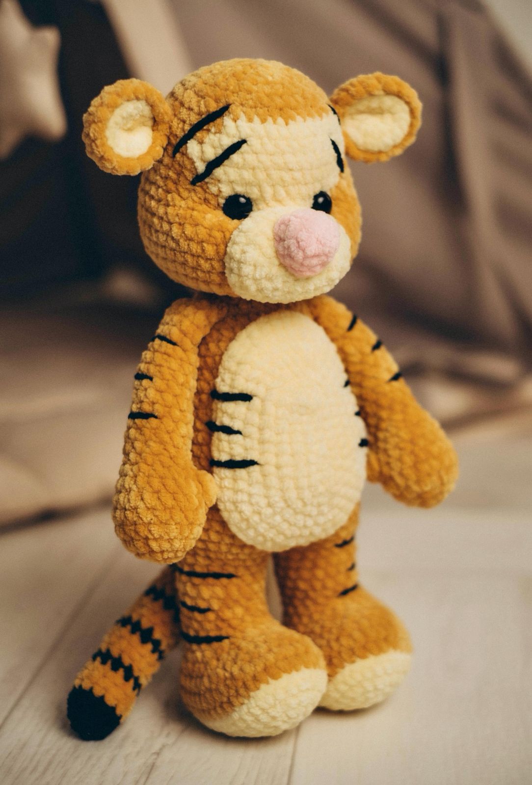 Waarom kopen⦠als je er zelf ƩƩn kunt maken? Met deze uitgebreide handleiding haak je een 35 cm grote tijger compleet met gestreepte staart, gele buik en snuit ā perfect voor tijger-liefhebbers! š